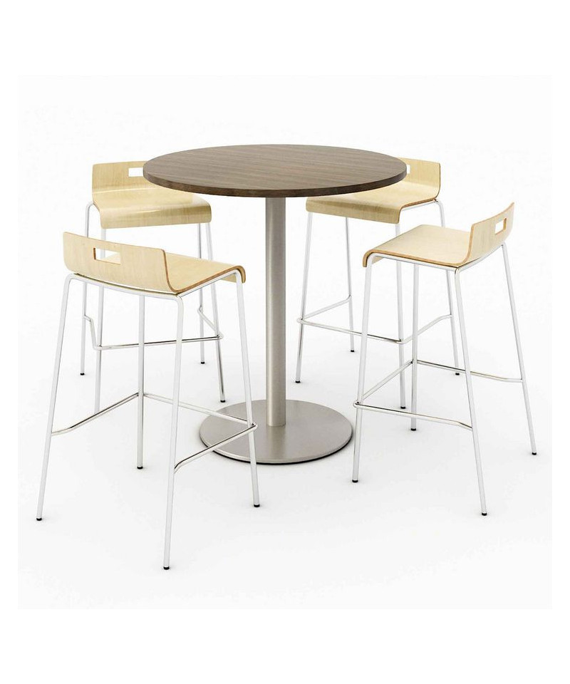 This bistro height pedestal table has a 1.25" thick high-pressure laminate top that's durable and easy to clean. The top has an attractive edge that won't crack or peel. The solid cast iron round base has leveling glides to prevent the table from wobbling on uneven floors. The column has a 3" diameter and is made of 16-gauge steel. The top and base are all shipped in one box. Easy to assemble. The chic, stylish and visually appealing stools are packed with versatility and function at affordable prices. Ideal for cafeterias, breakrooms, auditoriums and seminars or common areas. The durable frame is 0.75" round tubing made of 16-gauge steel. The attractive bent plywood shell has a high-pressure laminate finish for maximum durability and easy maintenance. The one-piece construction has a sle