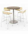 Pedestal Bistro Table with Four Natural Jive Series Barstools, Round, 36" Dia x 41h, Studio Teak