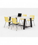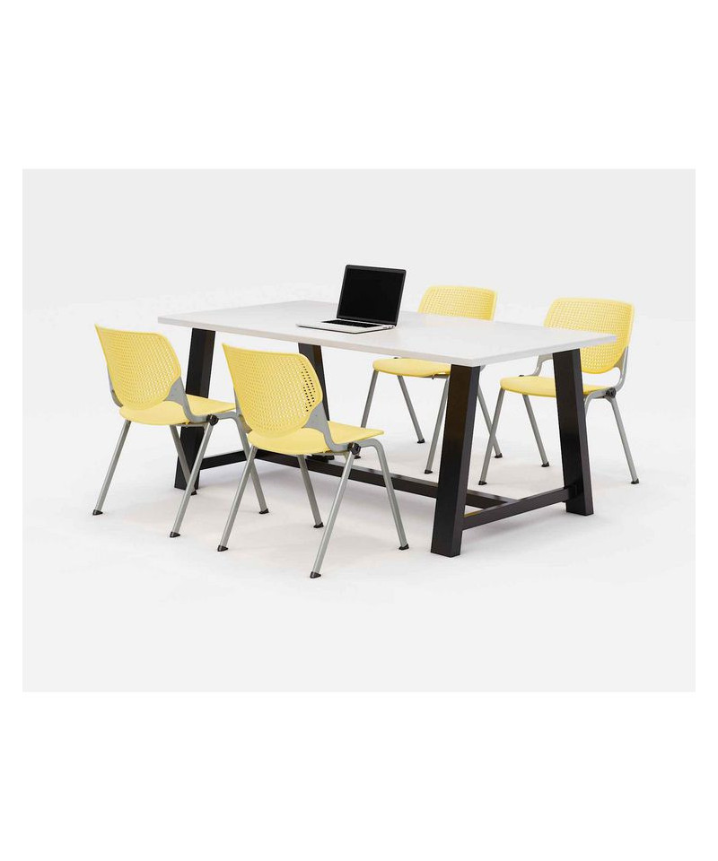 Midtown Dining Table with Four Yellow Kool Series Chairs, 36 x 72 x 30, Designer White