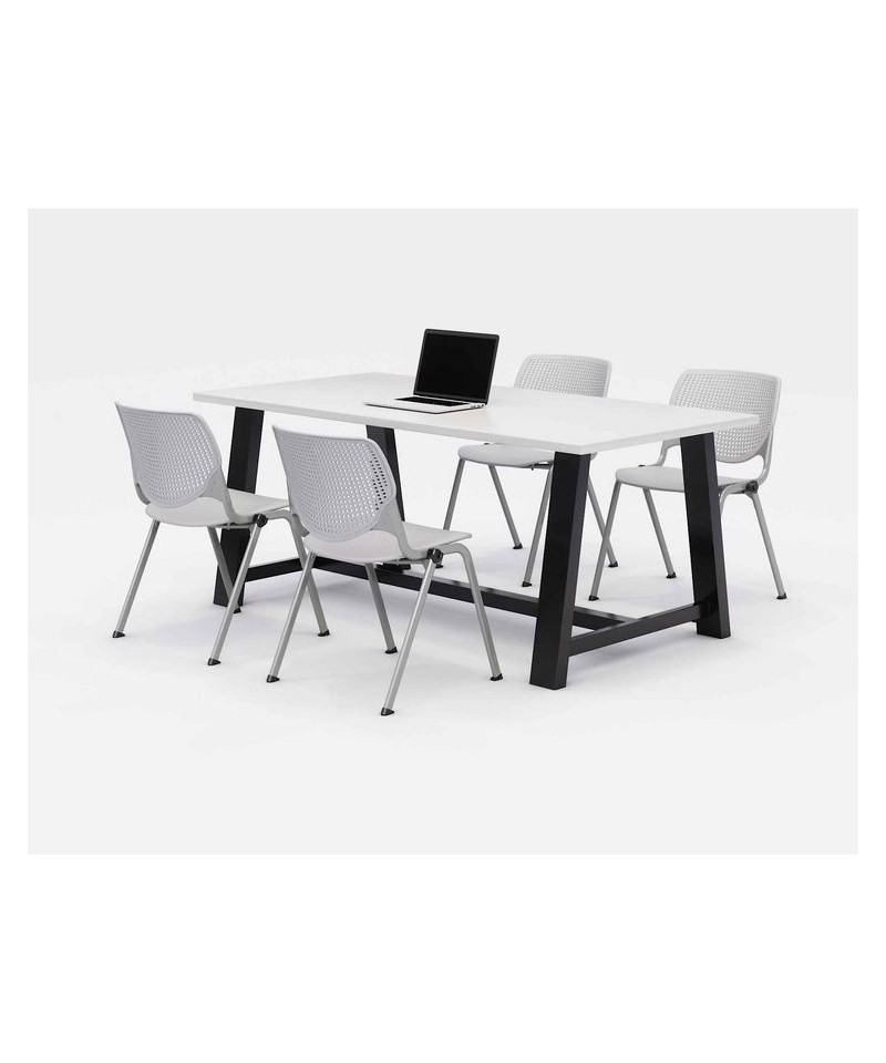 Midtown Dining Table with Four Light Gray Kool Series Chairs, 36 x 72 x 30, Designer White