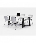 Get the industrial vintage look with these classic dining table sets. They are ideal for meetings, collaborative areas, cafeterias or any touchdown area. The table frame has 4" x 2" thick steel legs with cross-beams for a distinct look and unmatched durability. The top is made of 1.25" thick high-pressure laminate with a matching 3mm PVC edge. It's resistant to stains and spills and is easy to maintain and clean. The included chairs have an easy to clean polypropylene seat and back. The ergonomic perforated backs allow for enhanced circulation, while the radius conforms to your back for maximum comfort. The chairs offer contoured extra wide seat pan and a 400-lb weight capacity to provide comfort and accommodate all sizes.
