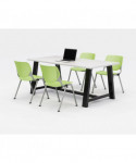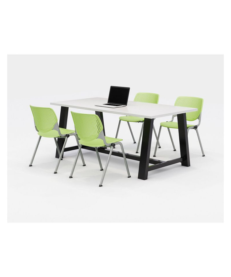 Midtown Dining Table with Four Lime Green Kool Series Chairs, 36 x 72 x 30, Designer White