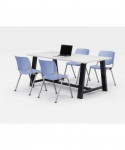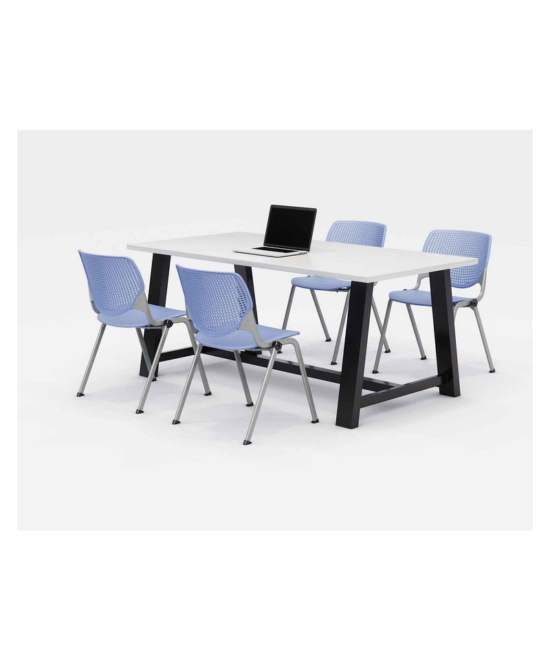 Midtown Dining Table with Four Periwinkle Kool Series Chairs, 36 x 72 x 30, Designer White