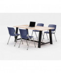 Midtown Dining Table with Four Navy Kool Series Chairs, 36 x 72 x 30, Kensington Maple