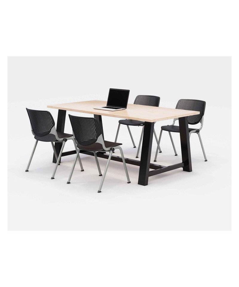 Midtown Dining Table with Four Black Kool Series Chairs, 36 x 72 x 30, Kensington Maple