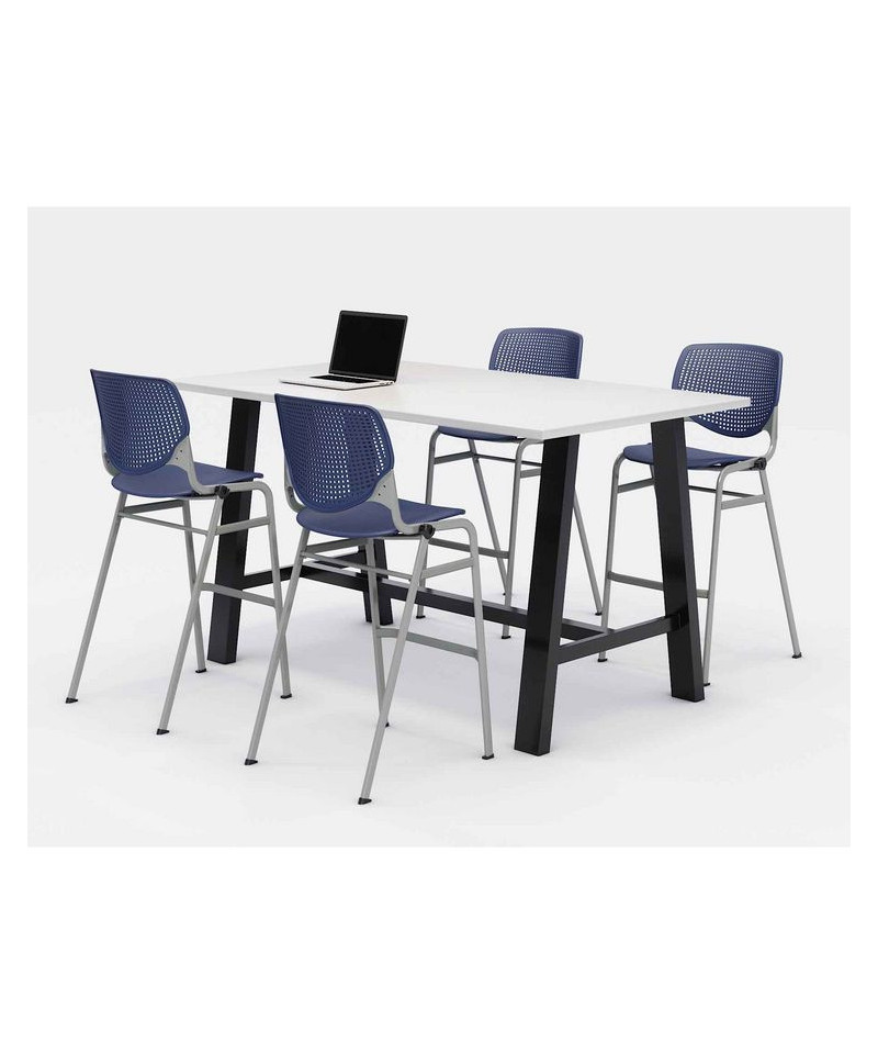 Midtown Bistro Dining Table with Four Navy Kool Barstools, 36 x 72 x 41, Designer White