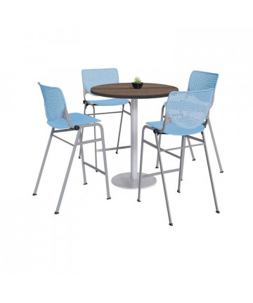 Get the industrial vintage look with these classic dining table sets. They are ideal for meetings, collaborative areas, cafeterias or any touchdown area. The table frame has 4" x 2" thick steel legs with cross-beams for a distinct look and unmatched durability. The top is made of 1.25" thick high-pressure laminate with a matching 3mm PVC edge. It's resistant to stains and spills and is easy to maintain and clean. The included stools have an easy to clean polypropylene seat and back. The ergonomic perforated back allows for enhanced circulation, while the radius conforms to your back for maximum comfort. The stools offer contoured extra wide seat pan and a 400-lb weight capacity to provide comfort and accommodate all sizes. Tables shipped unassembled.