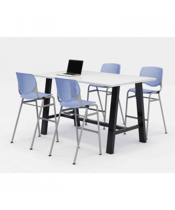 Midtown Bistro Dining Table with Four White Kool Barstools, 36 x 72 x 41, Designer White