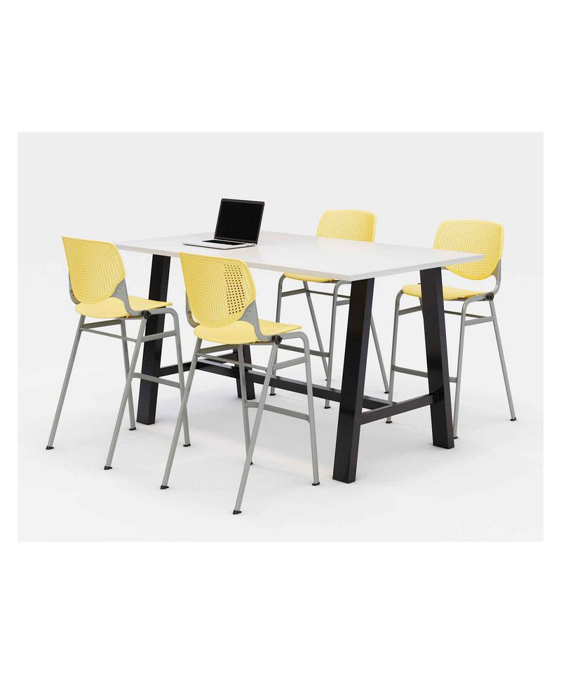 Midtown Bistro Dining Table with Four Yellow Kool Barstools, 36 x 72 x 41, Designer White