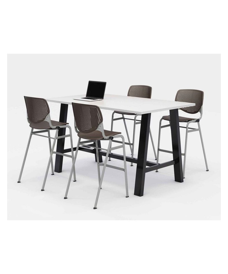 Midtown Bistro Dining Table with Four Brownstone Kool Barstools, 36 x 72 x 41, Designer White