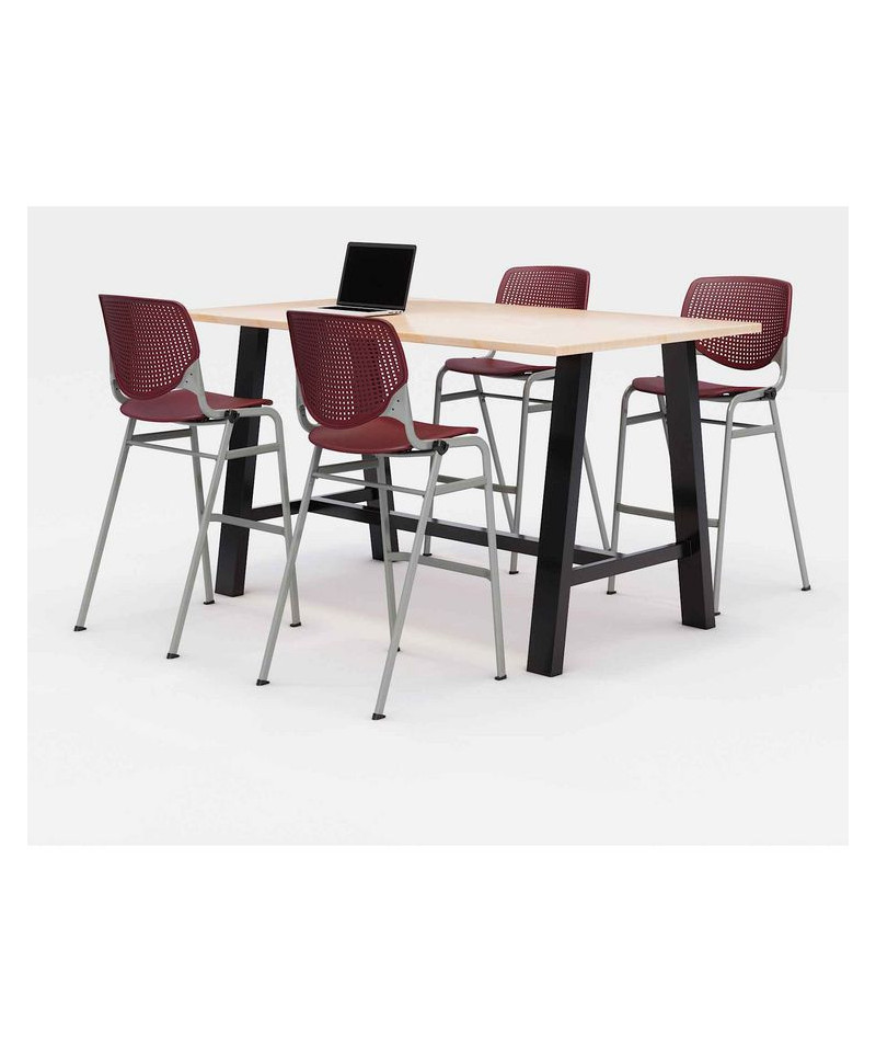 Midtown Bistro Dining Table with Four Burgundy Kool Barstools, 36 x 72 x 41, Kensington Maple