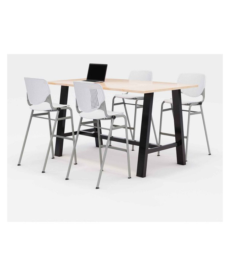 Get the industrial vintage look with these classic dining table sets. They are ideal for meetings, collaborative areas, cafeterias or any touchdown area. The table frame has 4" x 2" thick steel legs with cross-beams for a distinct look and unmatched durability. The top is made of 1.25" thick high-pressure laminate with a matching 3mm PVC edge. It's resistant to stains and spills and is easy to maintain and clean. The included stools have an easy to clean polypropylene seat and back. The ergonomic perforated back allows for enhanced circulation, while the radius conforms to your back for maximum comfort. The stools offer contoured extra wide seat pan and a 400-lb weight capacity to provide comfort and accommodate all sizes. Tables shipped unassembled.