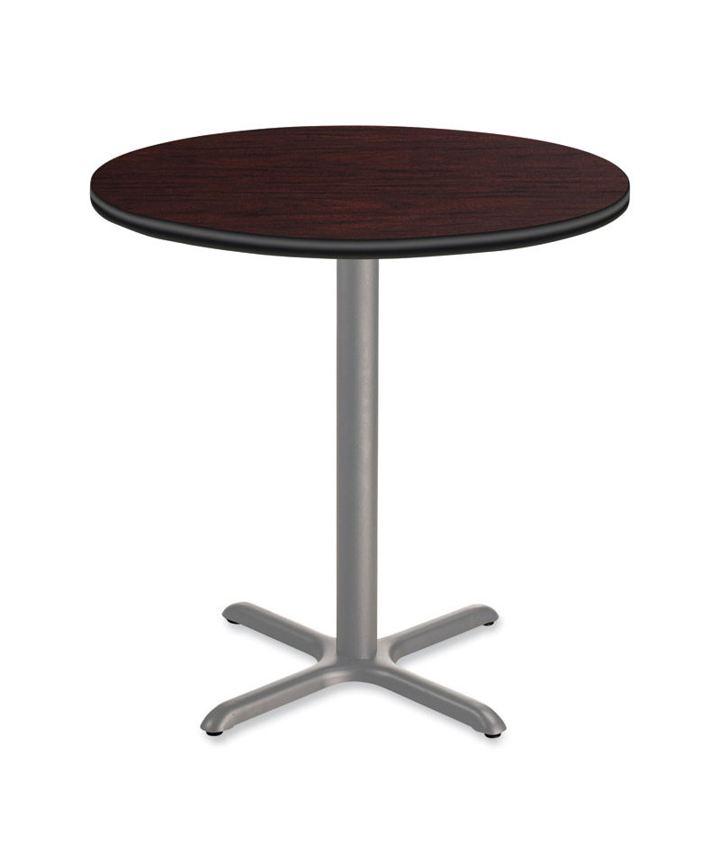 Cafe Table, 36" Diameter x 36h, Round Top/X-Base, Mahogany Top, Gray Base