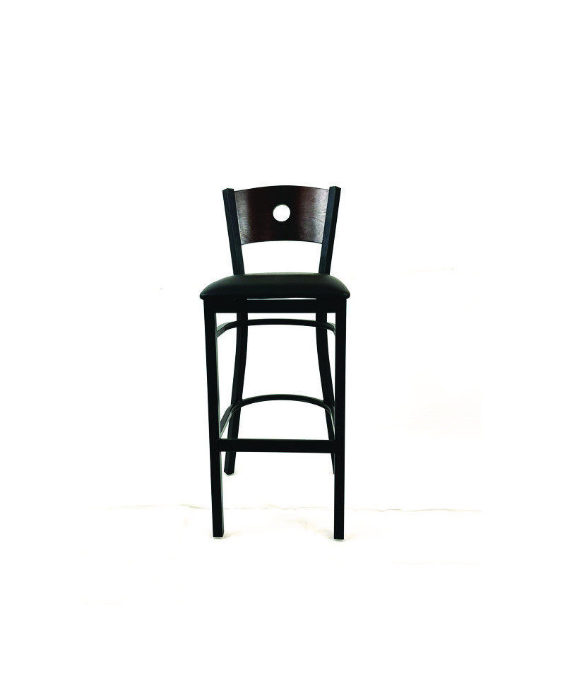 Circle Series Barstool, Supports Up to 300 lb, 28.5" Seat Height, Black Seat, Dark Walnut Back, Black Base