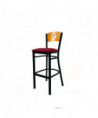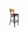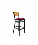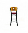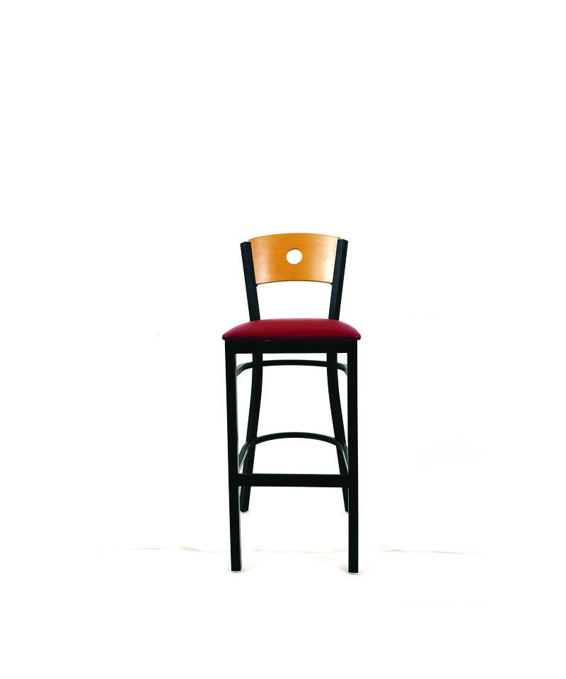 Circle Series Barstool, Supports Up to 300 lb, 28.5" Seat Height, Burgundy Seat, Natural Back, Black Base