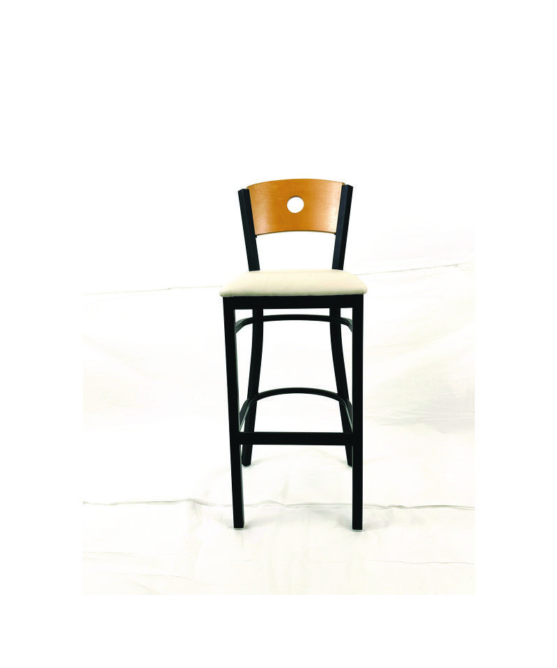 Circle Series Barstool, Supports Up to 300 lb, 28.5" Seat Height, Cream Seat, Natural Back, Black Base
