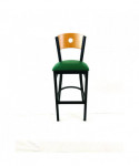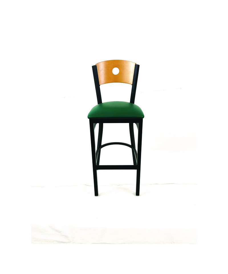 Circle Series Barstool, Supports Up to 300 lb, 28.5" Seat Height, Green Seat, Natural Back, Black Base