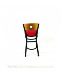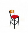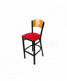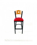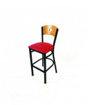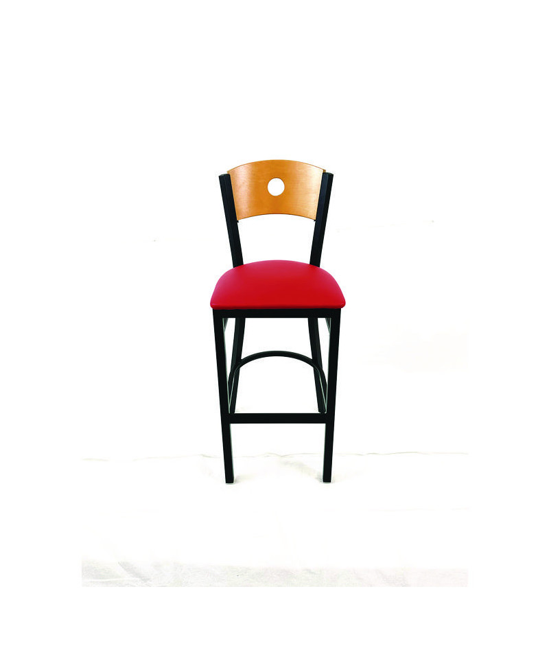 Circle Series Barstool, Supports Up to 300 lb, 28.5" Seat Height, Red Seat, Natural Back, Black Base