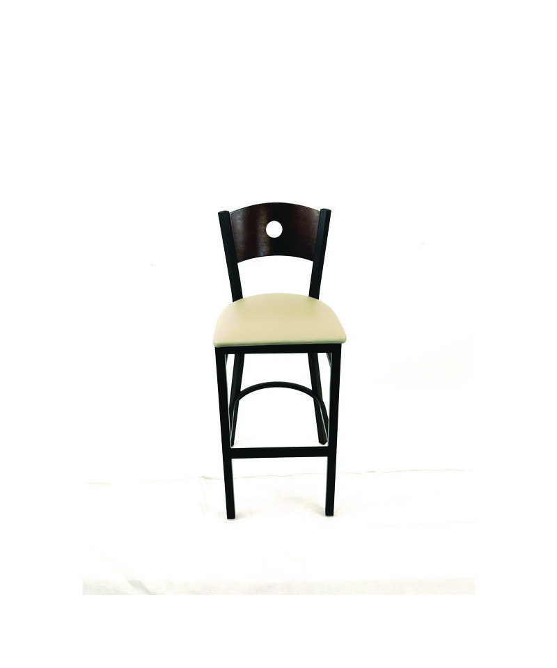 Circle Series Barstool, Supports Up to 300 lb, 28.5" Seat Height, Taupe Seat, Dark Walnut Back, Black Base
