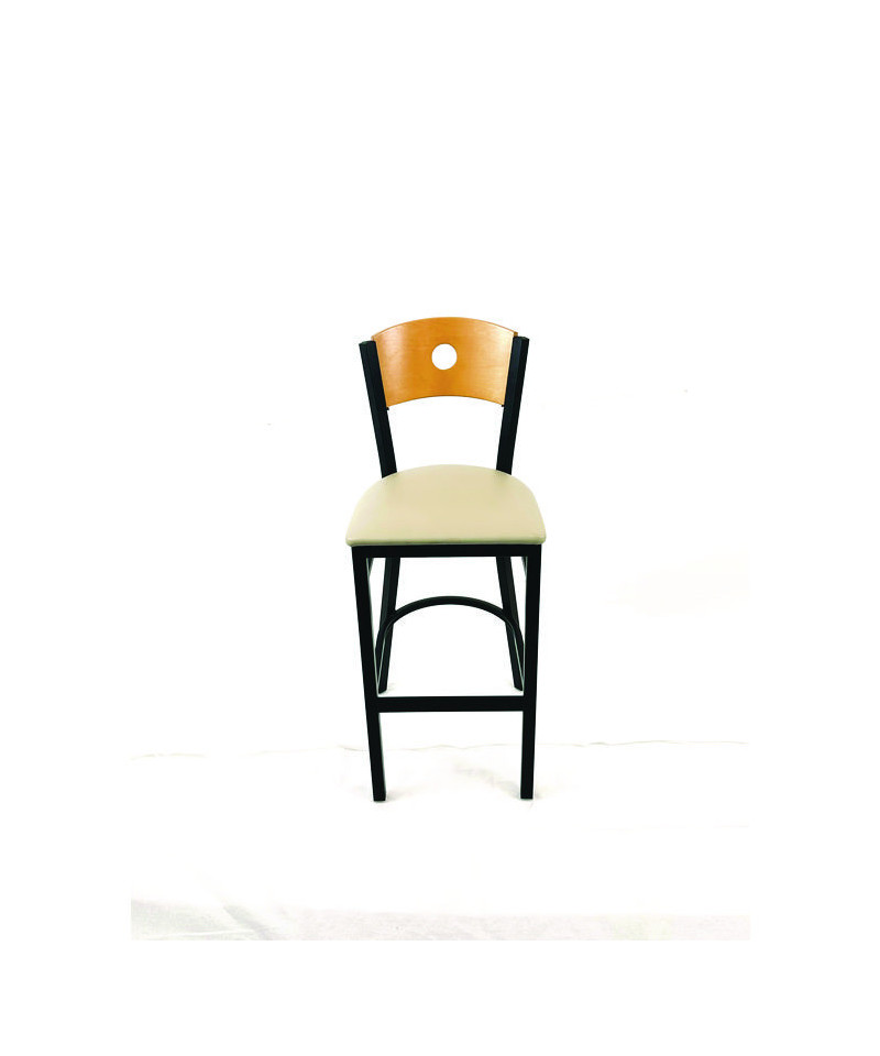 Circle Series Barstool, Supports Up to 300 lb, 28.5" Seat Height, Taupe Seat, Natural Back, Black Base
