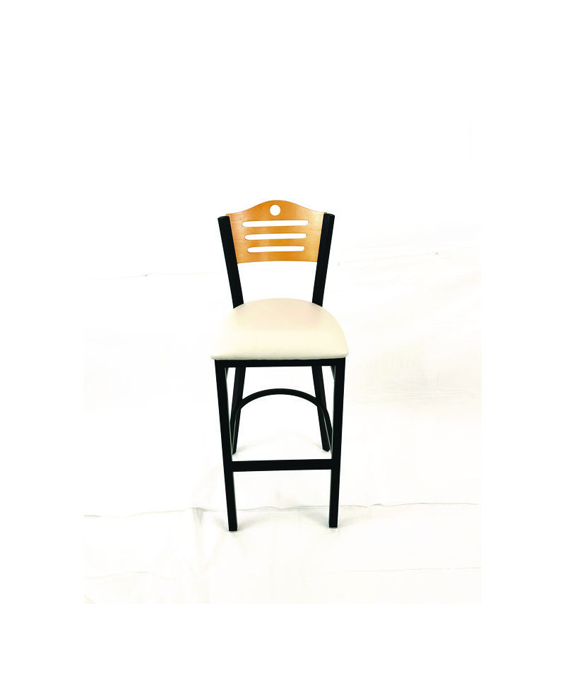 Eagle Series Barstool, Supports Up to 300 lb, 28.5" Seat Height, Cream Seat, Natural Back, Black Base