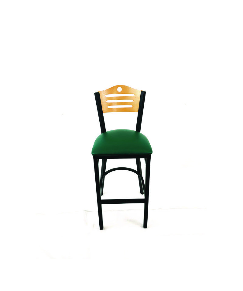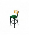 Eagle Series Barstool, Supports Up to 300 lb, 28.5" Seat Height, Green Seat, Natural Back, Black Base
