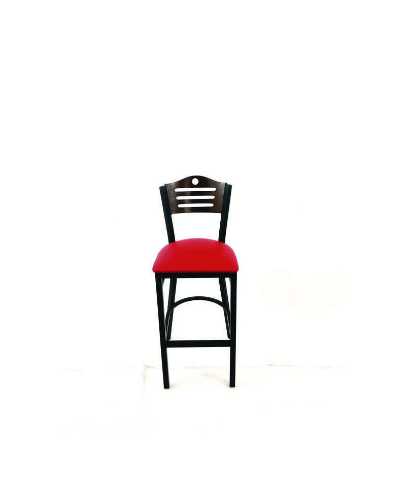 Eagle Series Barstool, Supports Up to 300 lb, 28.5" Seat Height, Red Seat, Dark Walnut Back, Black Base