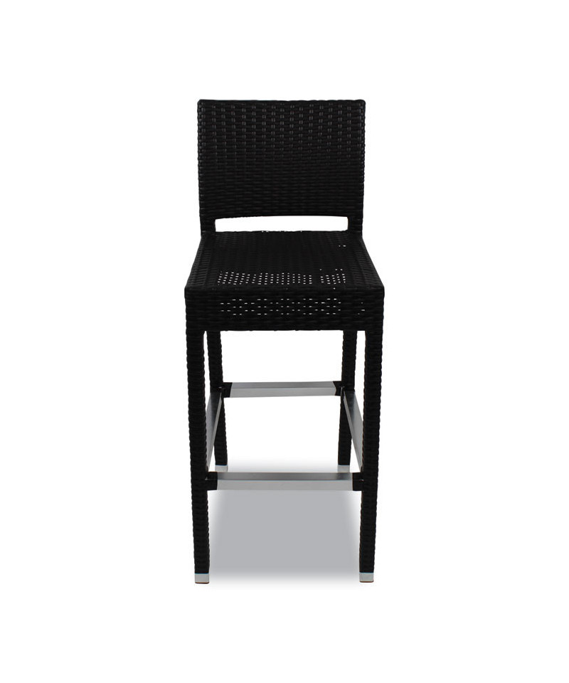Introducing a wonderful outdoor seating solution for your business or home-the Gama Series Barstool. Add a touch of style to your space while providing seating comfort to your guests. Though the Gama Series features a more traditional basketweave design, its overall form factor is imbued with a thoroughly modern, sophisticated aesthetic. Each stool features a sturdy, stable, tight-weave frame with polished metal accents as well as a smoothly finished woven seat and back that deliver just the right amount of "give". It's a stool that's sure to stand up to the demands of even the busiest foodservice environments. Great looking, very comfortable, wonderfully durable and easy to clean, too, these stools are perfect for any high-traffic area. As the woven design also keeps the stool surprisingly lightweight, it's also easier to move around and rearrange as needed. Whether you're placing this barstool at your outdoor bar, in your outdoor dining area or simply on your backyard deck, it's sure to impress.