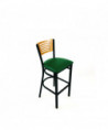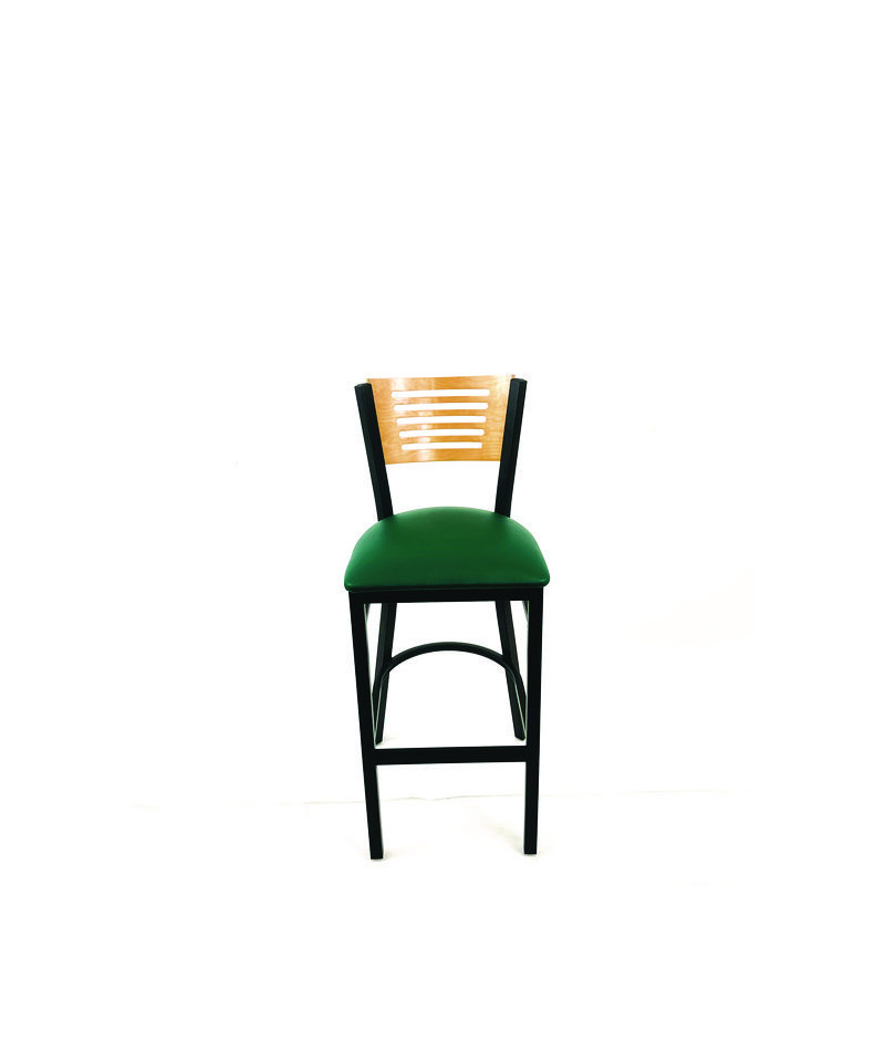 Jones River Series Barstool, Supports Up to 300 lb, 28.5" Seat Height, Green Seat, Natural Back, Black Base