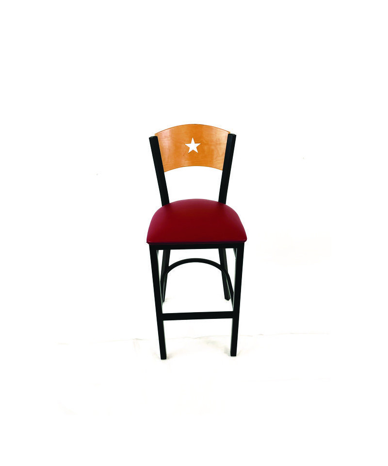 Liberty Series Barstool, Supports Up to 300 lb, 28.5" Seat Height, Burgundy Seat, Natural Back, Black Base