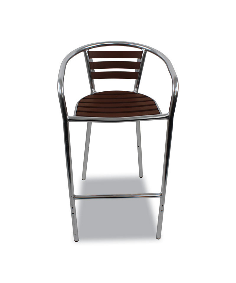 Enhance your hospitality options while you elevate the appeal of your space. Pinzon Series Barstools feature a sleek, modern design that adds an element of sophistication to your outdoor space without compromising on either comfort or durability. Sturdy and stable, their tubular steel frame with footrest delivers the reliable support required without leaving your table or bar space feeling cluttered. Slick, synthetic-slat seat and back pads are a bit more flexible than wood-slat alternatives to deliver a more comfortable "springy" feel while keeping overall maintenance low-key. Just wipe down the seat and back with a damp cloth to keep them spotless. It couldn't be easier for these stools to keep up with the demands of even the busiest food and drink establishments. Pinzon Series Barstools are also surprisingly lightweight—just about any server could effortlessly rearrange your layout as needed. Attractive, comfortable, durable and eminently versatile, these stools cover all the bases.