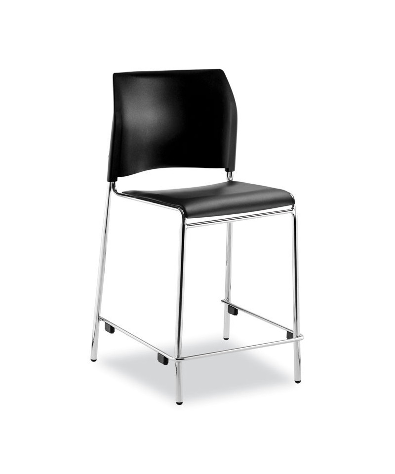 Gorgeous, modern looking seat and back, mounted to a taller four-legged frame in counter height with a 24" high seat. 18-gauge 7/8" tubing. Solid 1" plastic stacking glides. Back design provides ergonomic support. Matched to the Cafetorium Chairs we now offer a solution for the entire cafeteria seating environment.