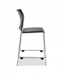 Gorgeous, modern looking seat and back, mounted to a taller four-legged frame in counter height with a 24" high seat. 18-gauge 7/8" tubing. Solid 1" plastic stacking glides. Back design provides ergonomic support.