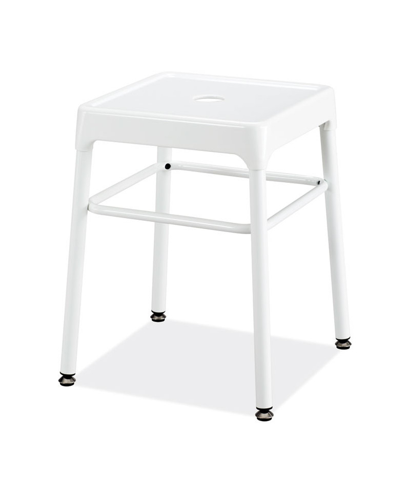 The Safco® Steel Guest Stool is a sturdy, all steel stool that is great for use in a variety of spaces. The guest-height stool is perfectly suited for use in breakrooms, open floor plans, personal workspaces, lobbies and more. The easy-to-clean powder coat finish is durable and chip-resistant for a long-lasting seating option. These stools include choice of nylon leg caps or leveling glides to protect floors from scratches or scuffs. The hole in the top of the seat allows the chair to be easily grabbed and carried to allow for portability between spaces.