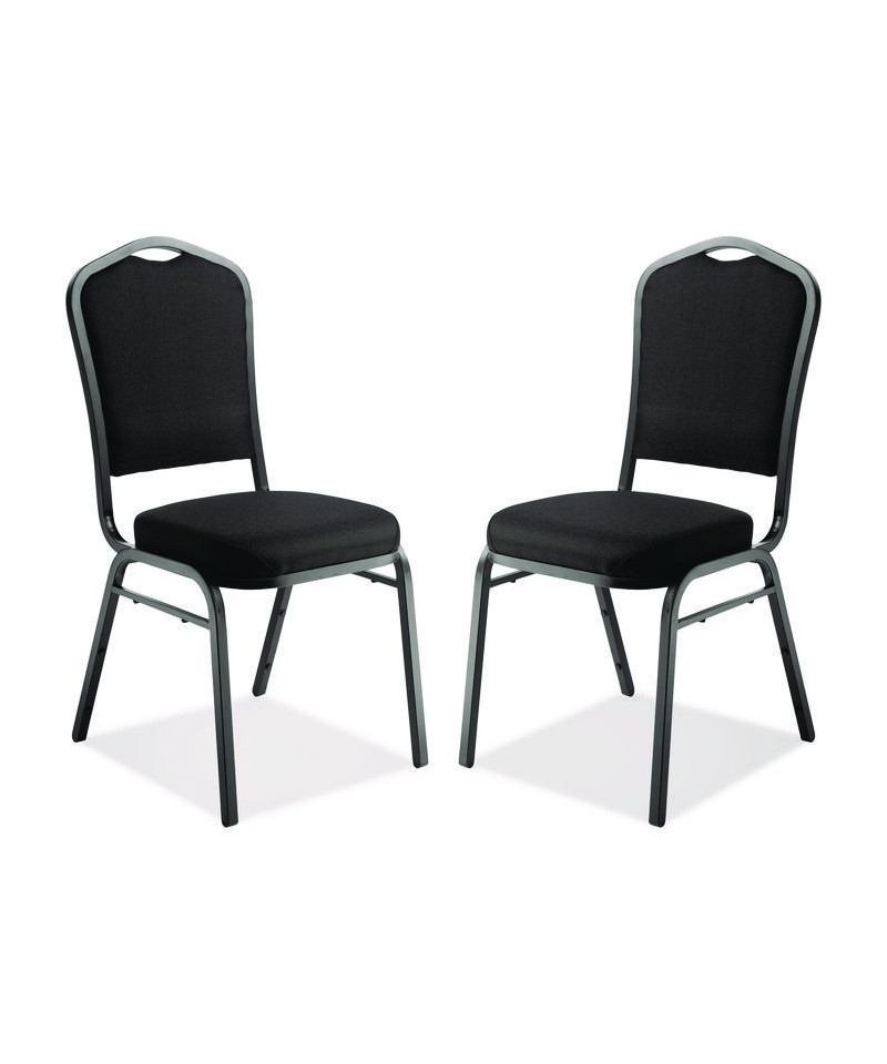 9300 Series Deluxe Upholstered Stack Chair, Fabric, Supports 500 lb, 19" Seat Height, Ebony Black Seat/Back, Black Base, 2/PK