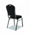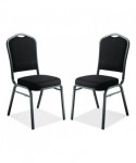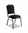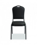 The 9300 Series Deluxe Upholstered Sillouette stack chair is durable and classy enough to use in your busiest social setting, be it a dining room or corporate banquet hall. The seat features a strong square 18-gauge steel frame plus an under-seat H-shaped brace for extra support. The seat features supremely comfortable and spacious 2"-thick high-density foam padding with institutional grade upholstery and a waterfall-style edge. MDF core within both the seat and crown-style backrest which has a built-in handle for easy moving and stacking. Fortifying stacking bars and twelve plastic bumpers protect the powder-coated paint finish from scratches when the chair is stacked.
