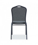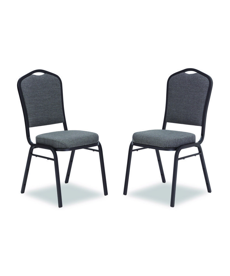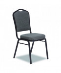 The 9300 Series Deluxe Upholstered Sillouette stack chair is durable and classy enough to use in your busiest social setting, be it a dining room or corporate banquet hall. The seat features a strong square 18-gauge steel frame plus an under-seat H-shaped brace for extra support. The seat features supremely comfortable and spacious 2"-thick high-density foam padding with institutional grade upholstery and a waterfall-style edge. MDF core within both the seat and crown-style backrest which has a built-in handle for easy moving and stacking. Fortifying stacking bars and twelve plastic bumpers protect the powder-coated paint finish from scratches when the chair is stacked.