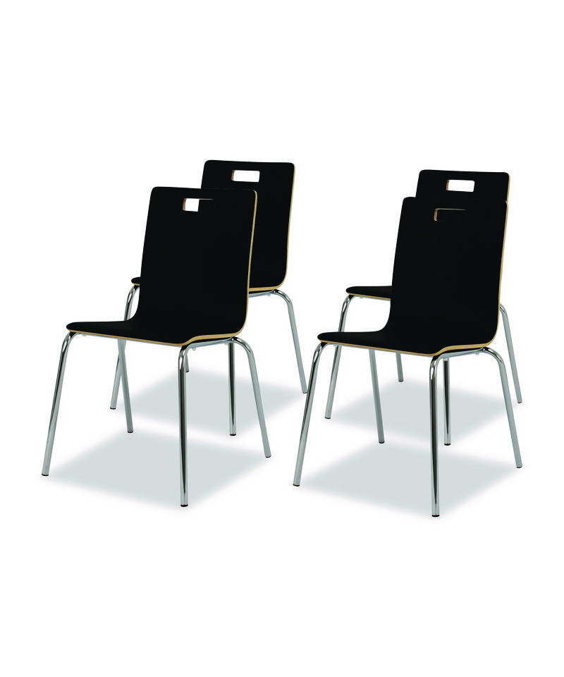 Bushwick Series Bentwood Chair, Supports Up to 500 lb, 18" Seat Height, Black Seat, Black Back, Chrome Base, 4/Carton