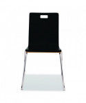 This chair features an eight-layer bent plywood seat with a high end HPL finish, and legs made of 0.88 in, 16-gauge chrome tubing.