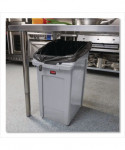 Large-angled opening provides ore access under the counter than traditional slim containers. Integrated venting channels make removing liners easier, improving productivity and reducing the risk of worker injury. Bag cinches secure liners around the rim of the container and allow for quick, knot-free liner changes. Rim and base handles improve grip and control while lifting and emptying full containers. Commercial-grade construction with high-quality resin material.