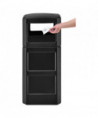 Square plastic trash can is a practical solution for indoor and outdoor waste management. Durable plastic construction will not rust, dent or chip. A great choice for parks, campuses and other public spaces.