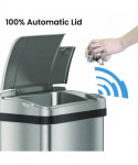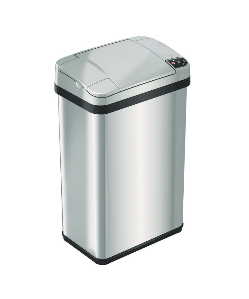 Rectangular Sensor Trash Can, 4 gal, Plastic/Stainless Steel, Silver
