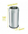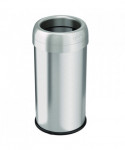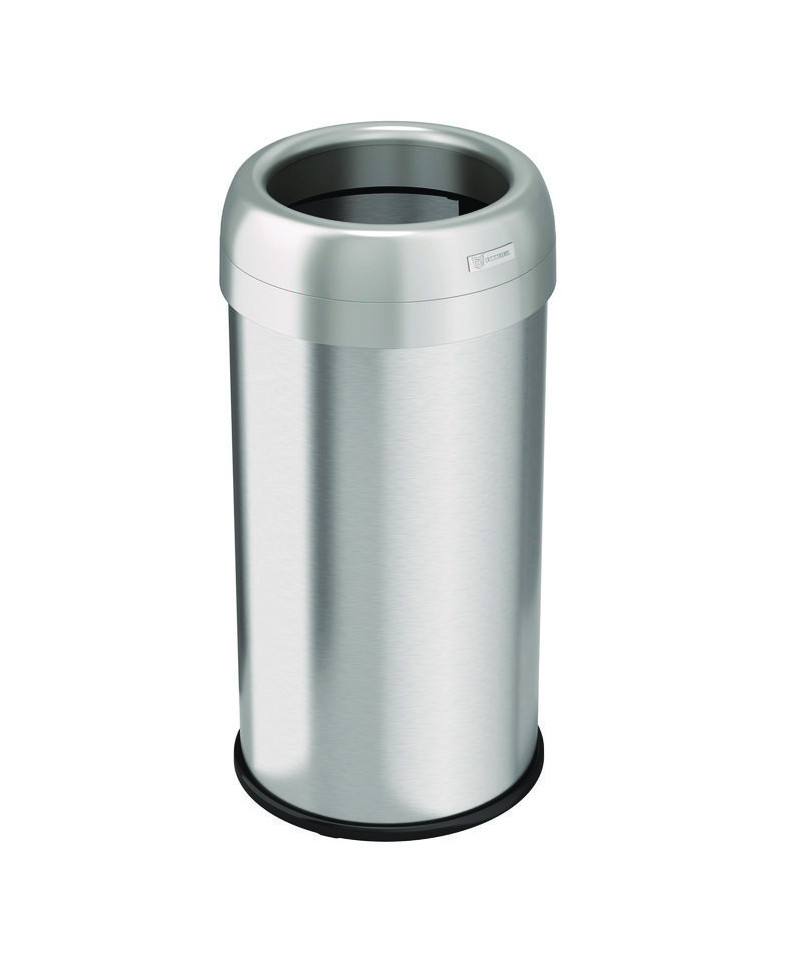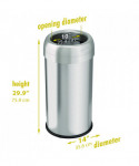 Open Top Trash Can, Round, 16 gal, Plastic/Stainless Steel, Silver