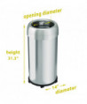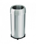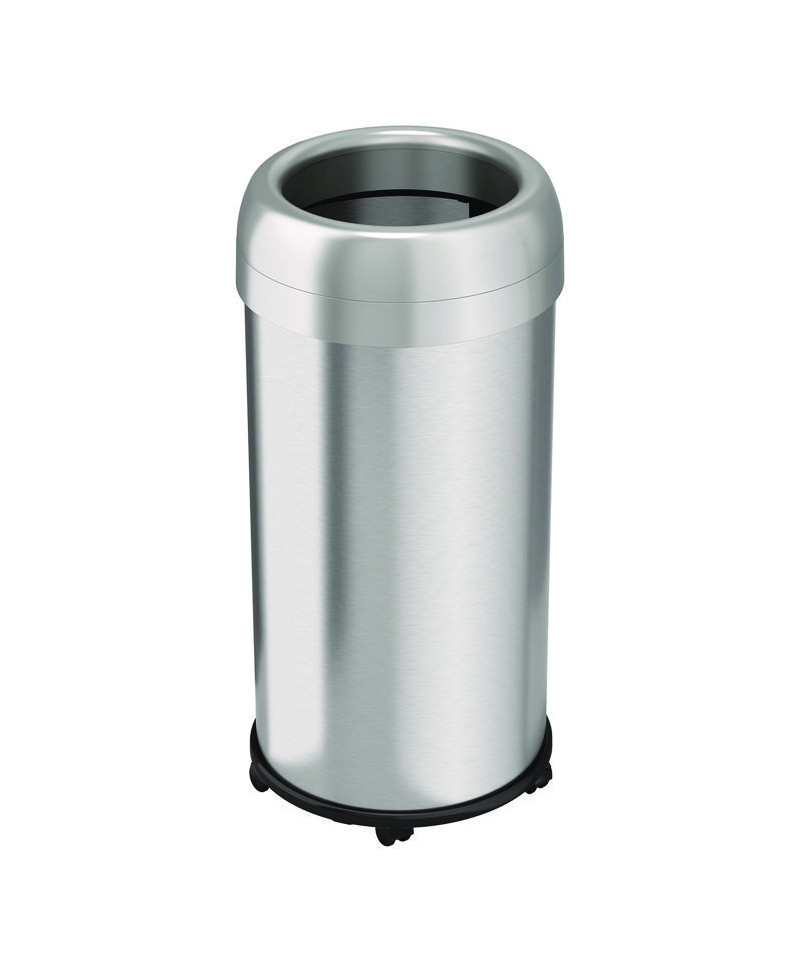 Open Top Trash Can with Wheels, Round, 16 gal, Plastic/Stainless Steel, Silver