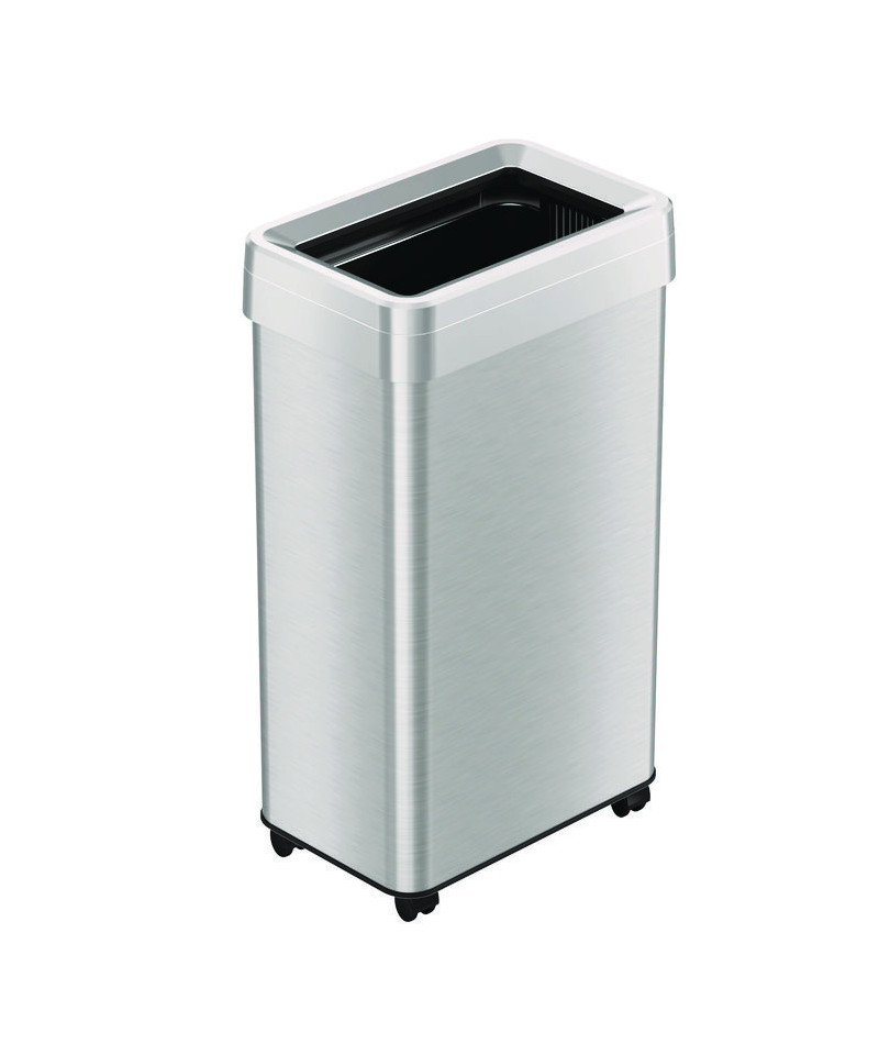 Upgrade your facility with our sleek and efficient open top trash cans, now featuring removable caster wheels for ultimate mobility and quick deployment! These bins are designed for swift and easy disposal with their convenient open top lids. Dual odor filters keep your surroundings fresh and clean, making them perfect for offices, hotels, government buildings, and hospitals. The durable stainless steel body and ABS plastic lid provide a stylish and long-lasting solution, while the slim, space-saving design integrates seamlessly into any professional setting. Enhance your space today with these practical, elegant, and mobile trash cans.