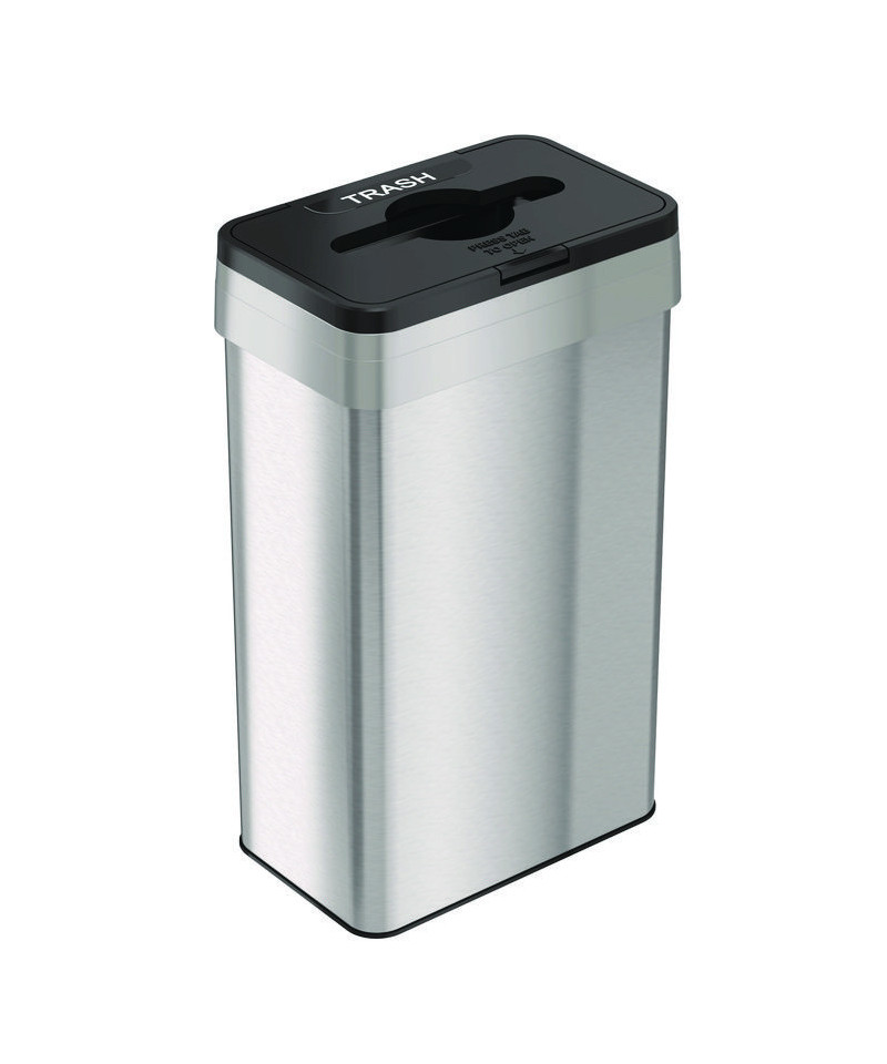 Streamline your facility's waste management with this rectangular open top bin, featuring a removable color-coded lid to designate trash. Ensures efficient sorting and quick disposal, making it appropriate for cafeterias, kitchens, and other food service areas, hospitality, medical, multi-family residential and commercial environments. Dual odor filters maintain a fresh and clean atmosphere, while the sturdy stainless steel body and ABS plastic lid guarantees durability. The slim, space-saving profile integrates seamlessly into any professional setting. Enhance your space today!