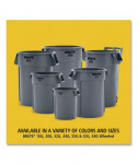 Rubbermaid Commercial Products BRUTE Trash Can, sets the standard for reliable garbage collection in medium traffic areas. Built tough and versatile, these garbage cans feature revolutionary venting channels that let air flow into the receptacle making liners up to 50% easier to remove. Integrated cinches allow bags to be attached to handles without knots for faster liner changes while contoured base handles and rounded top handles make it easier to lift and transport these receptacles in any environment. Constructed of the highest quality materials, these crush-resistant garbage cans have heavy-duty, reinforced bases that hold up even when dragged across rough surfaces. These trash cans are stackable to save space and provide an unbeatable value with their easy-to-clean, seamless construction, UV inhibitor, and never fade, warp, crack, or crush guarantee. Meets NSF 2, 21 approval and is USDA Meat and Poultry Group listed for food storage and ability to be cleaned ensuring regulatory compliance.