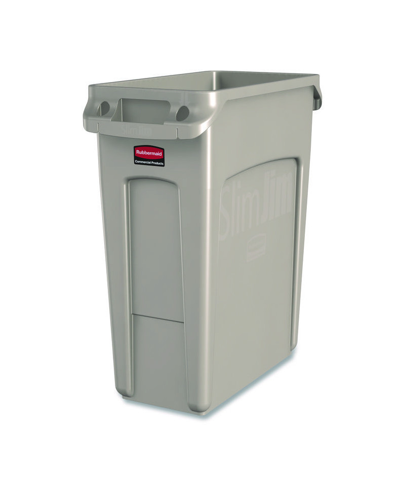 Can is designed to make trash removal easy. Venting channels take the strain out of liner removal, while the trash can's liner cinches to make removal faster. Features molded handles and base grips for easy lifting and handling. Constructed from sturdy plastic.