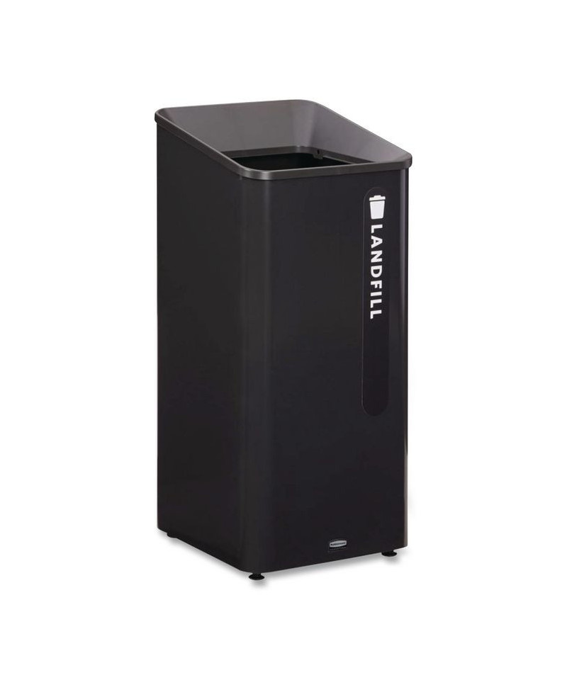 Rubbermaid Commercial Products Sustain Containers are a decorative and adaptable recycling solution made to improve your facility's sustainability compliance. Modular system allows the container stations to be customized and grow with each recycling program's needs. Restrictive waste stream openings and colored labels provide easy visual cues for patrons, making recycling easier and improving compliance with growing regulations.