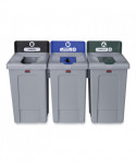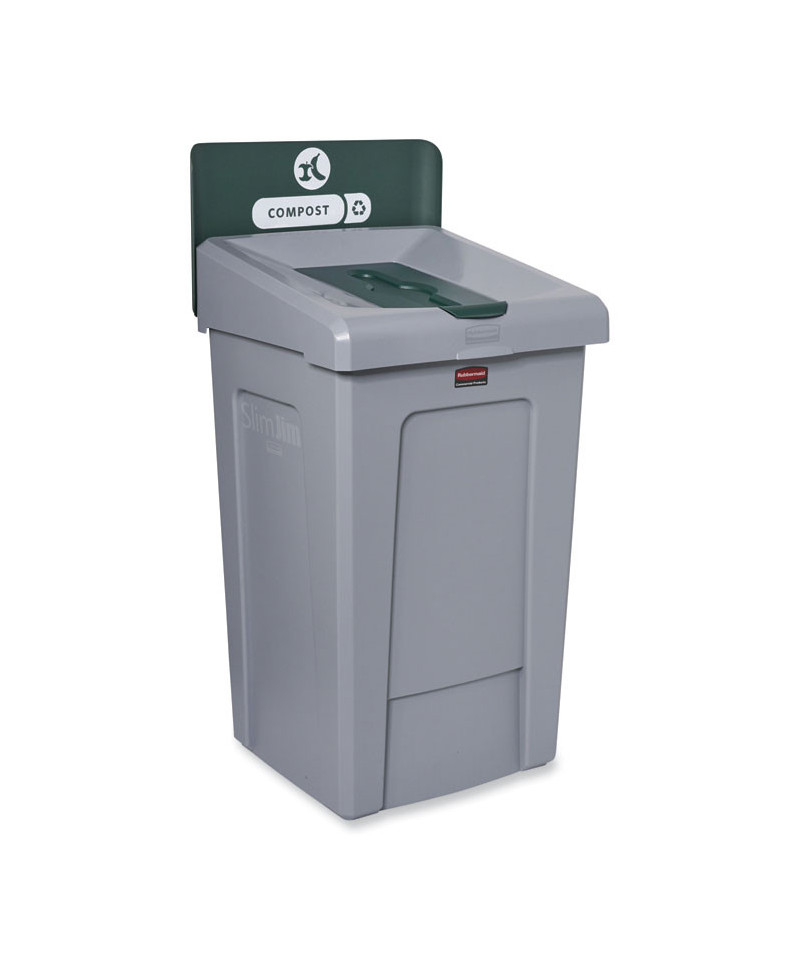 The Rubbermaid Commercial Slim Jim Recycling Station offers an adaptable recycling solution to fit any commercial facility's recycling needs and it seamlessly connects with the 23G Slim Jim Recycling Station. The station features color-coded lids and billboards, stream-specific openings, and labeling with intuitive icons and verbiage to help patrons and staff sort recyclables with ease. The station connects without the use of hardware or tools for easy assembly; the durable connector snaps into place, securely holding the containers together. The container features bag cinches, eliminating the need to tie knots to secure liners. Additionally, its venting channels make it up to 75% easier to remove full liners.
